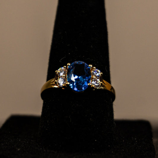 14K Gold Blue Zirconia and Diamond Accent Ring