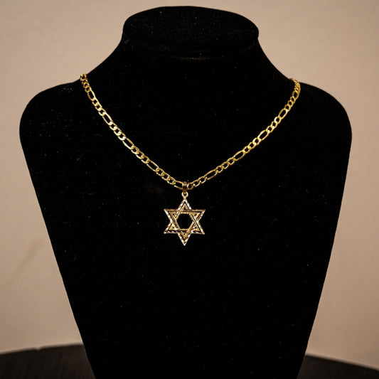 14K Gold Star David Textured Pendant